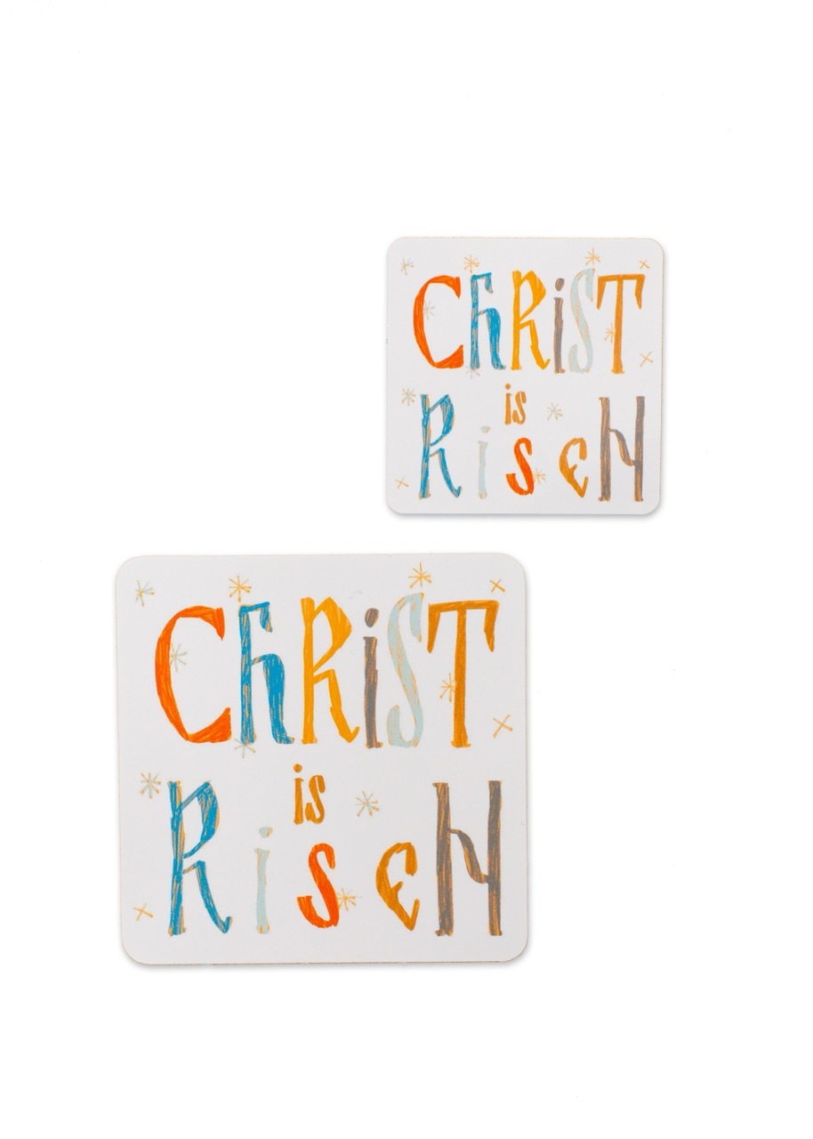 Two (2) "Christ is Risen" die cut vinyl stickers (one 3-inch, one 2-inch)