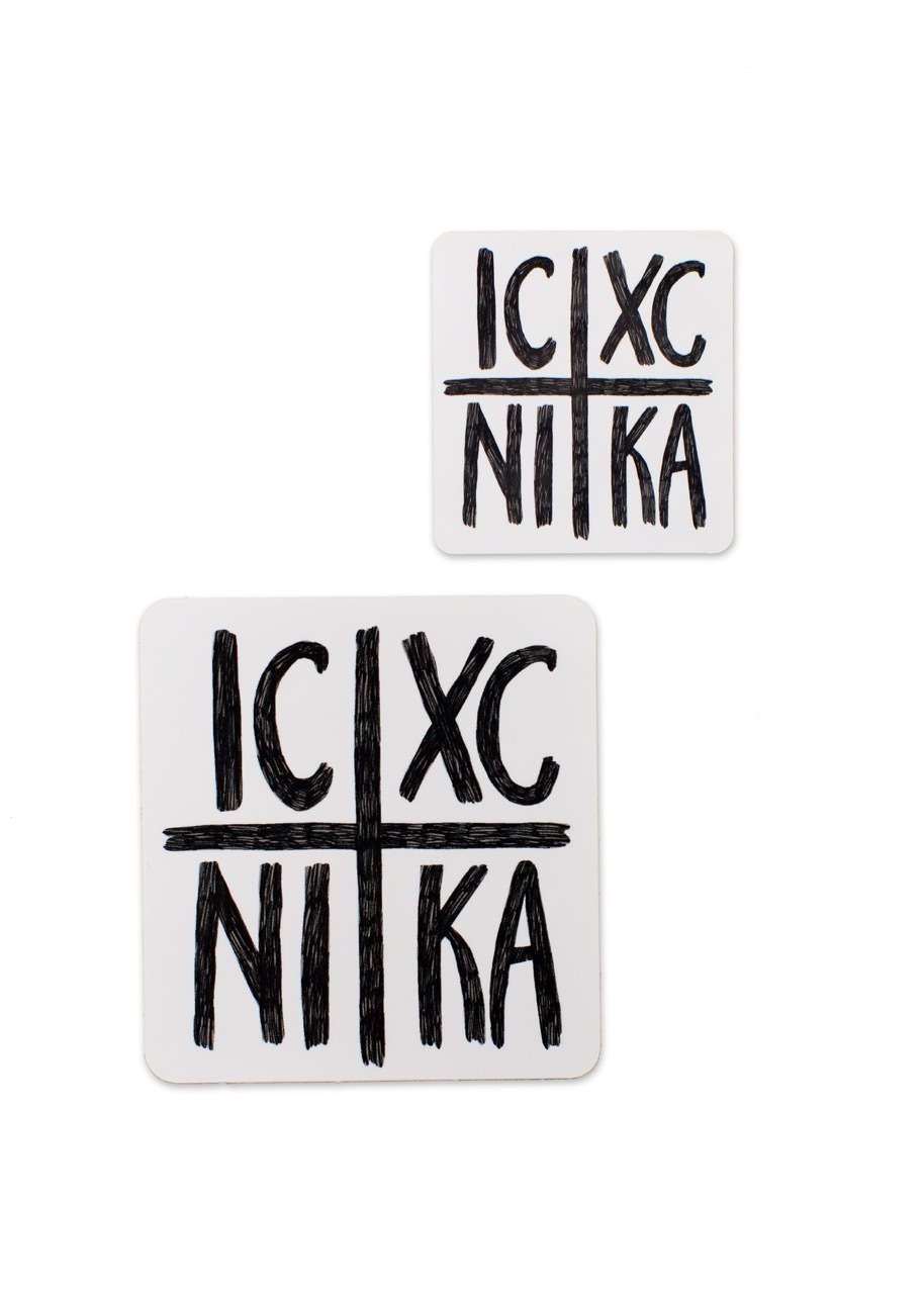 Two (2) ICXC-NIKA die cut vinyl stickers (one 3-inch, one 2-inch)